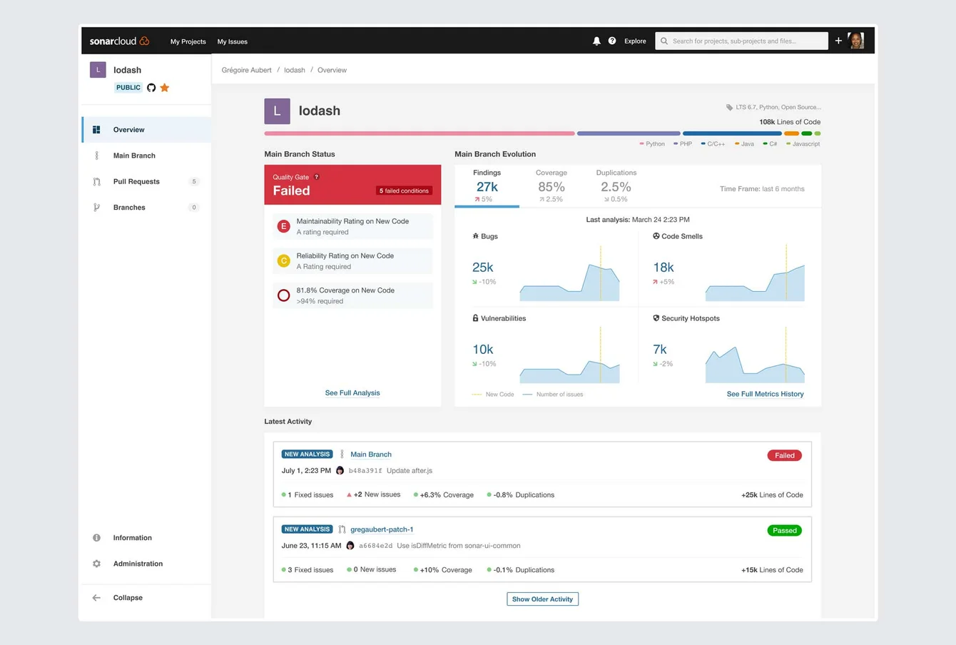 Another great integration for spotting security vulnerabilities is SonarCloud. SonarCloud detects Security Vulnerabilities, Bugs and Code Smells, and provides clear remediation guidance to help fix issues in code.