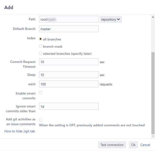 Jigit App, GitHub and Gitlab integration for Jira can hammer down the GitLab or GitHub instance if not configured correctly. Below you can see the test configuration.