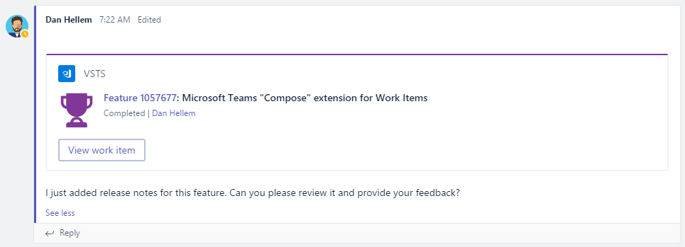Many teams find this integration very useful, with the Microsoft Teams app, integration, you can subscribe to notifications to monitor your pipeline, repositories and work items from the Teams channel. Users can also take actions like approving deployments or creating new work items in Azure Boards from Teams.